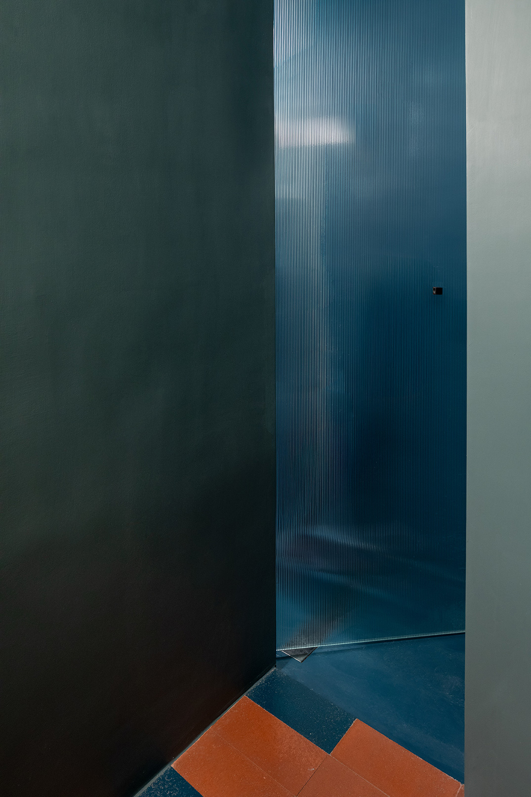 La zona living-pranzo, connessa da un ampio portale in ferro – elemento distintivo del progetto – sostituisce una parete preesistente, garantendo fluidità e luminosità tra gli ambienti. Un secondo volume, progettato per i servizi, funge da divisorio tra lo studio e la camera padronale, organizzando gli spazi con razionalità e assicurando un’elevata privacy, senza sacrificare l’equilibrio estetico generale.