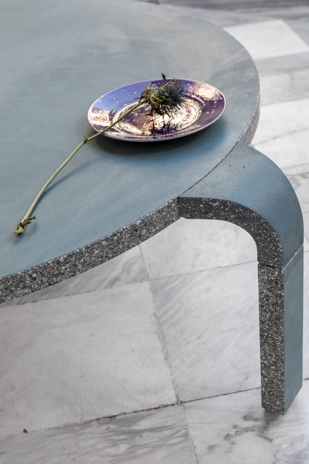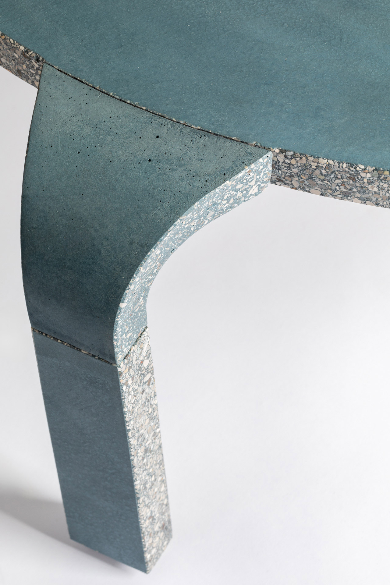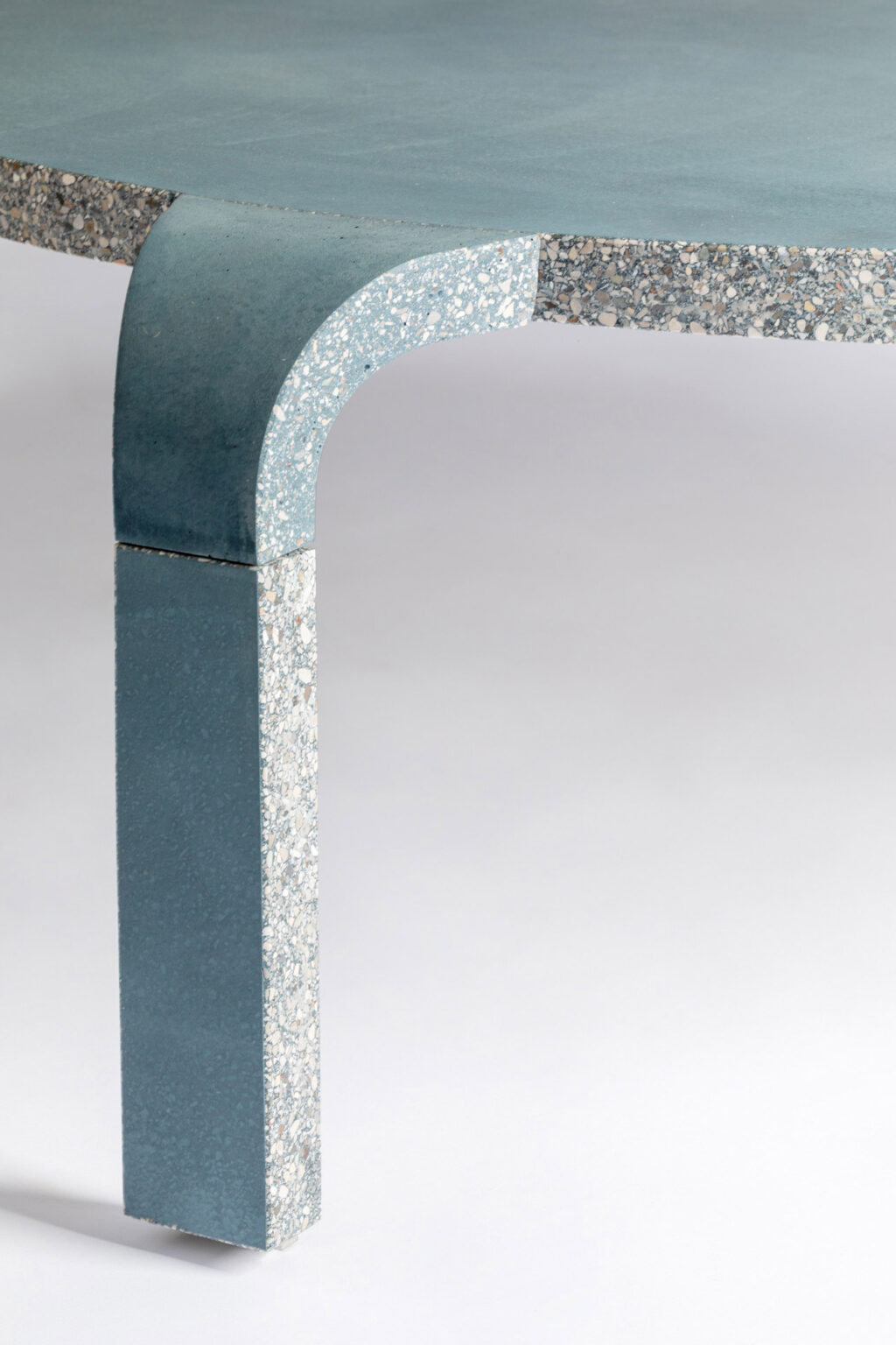 Un’anima in alluminio satinato ricoperta di un impasto di sabbia, acqua e cemento. A volerla enunciare sareb- be questa la formula minima di Salto, una collezione di tavoli e tavolini da interni e da esterni in cui l’eleganza delle linee e la crudezza dei materiali, invece che con- fliggere, inaspettatamente si amalgamano. Ciò che è struttura diventa finitura o un dettaglio di stile si fa elemento portante, dipende dal punto di vista. Tutto è fluido, come gli snodi che collegano i piani alle gambe. Eppure tutto è rigido. La forma contraddice la sostanza in questi trampolini nient’affatto elastici. Per saltare oltre ogni convenzione del design di arredo, restando con i piedi ben saldi nell’architettura.